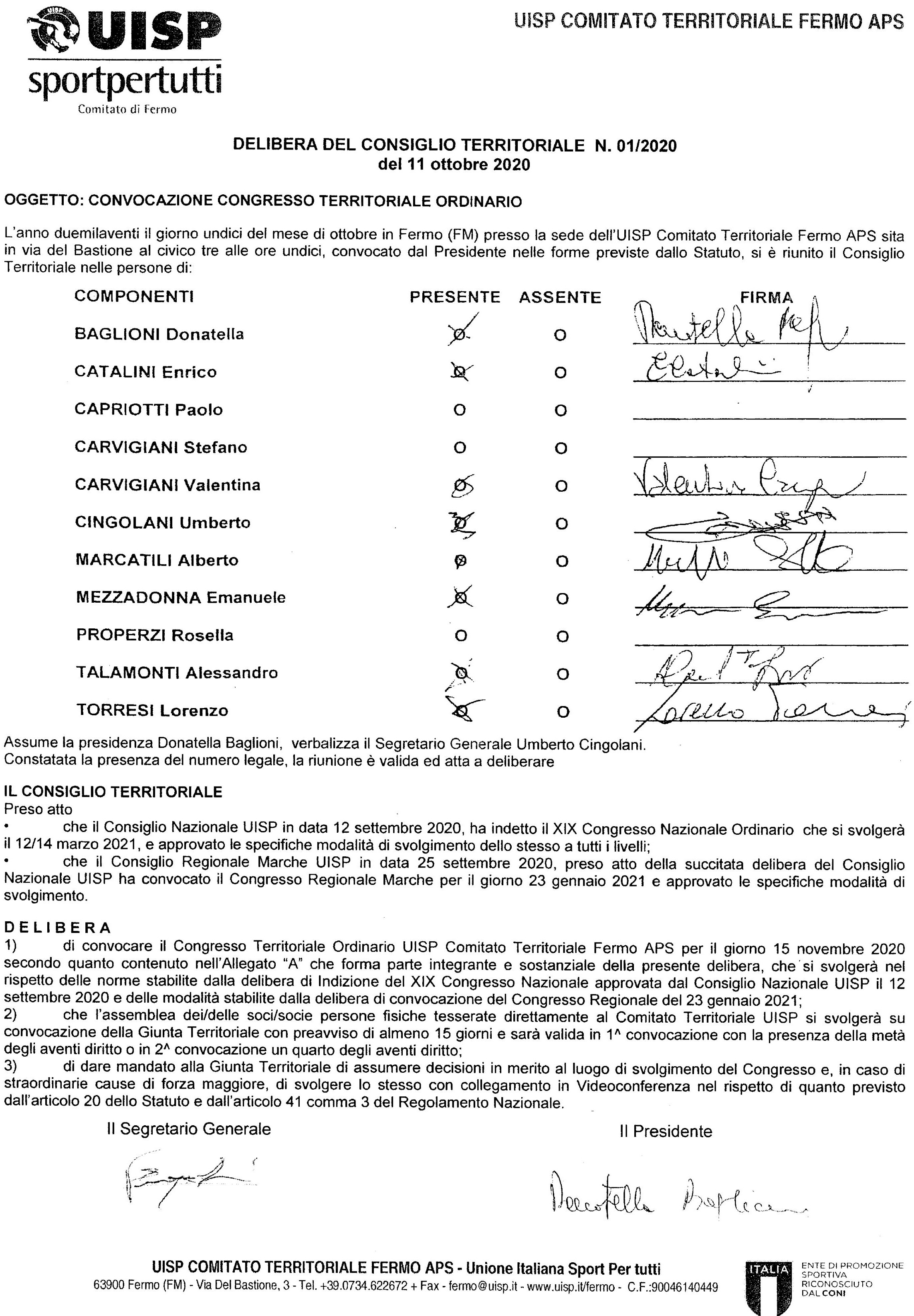 DELIBERA CONSIGLIO TERRITORIALE