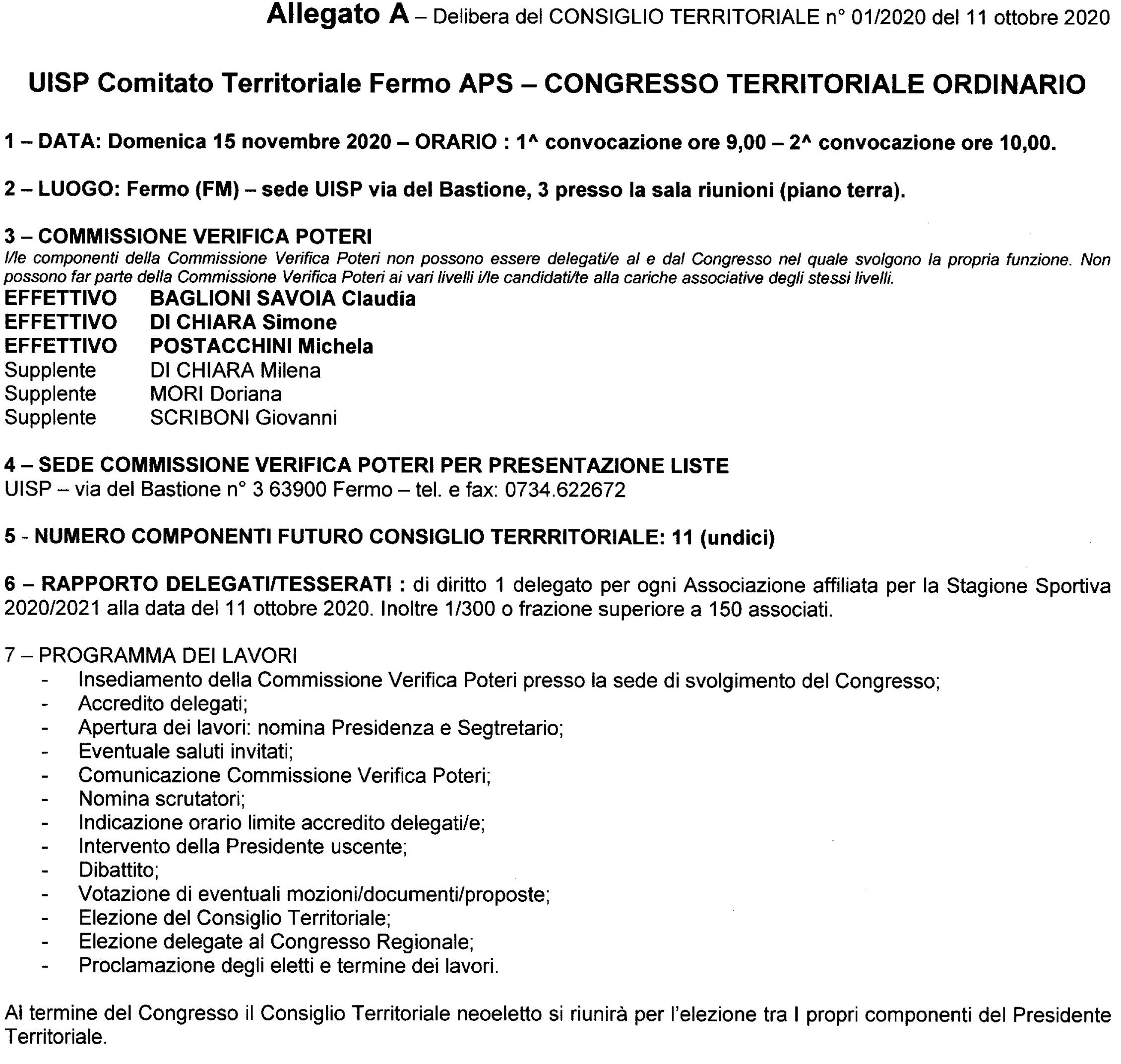 CONGRESSO ORDINARIO UISP 15-11-2020