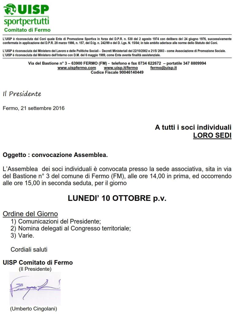 CONVOCAZIONE ASSEMBLEA TERRITORIALE