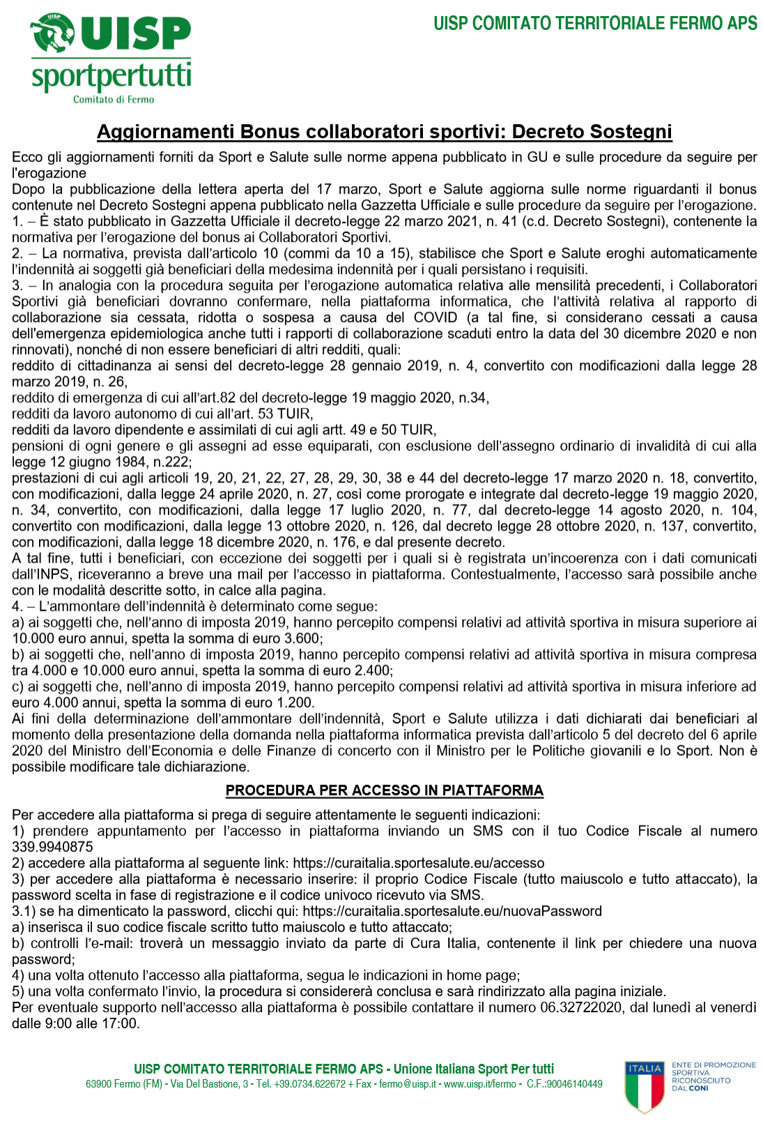 DECRETO SOSTEGNI COLLABORATORI SPORTIVI