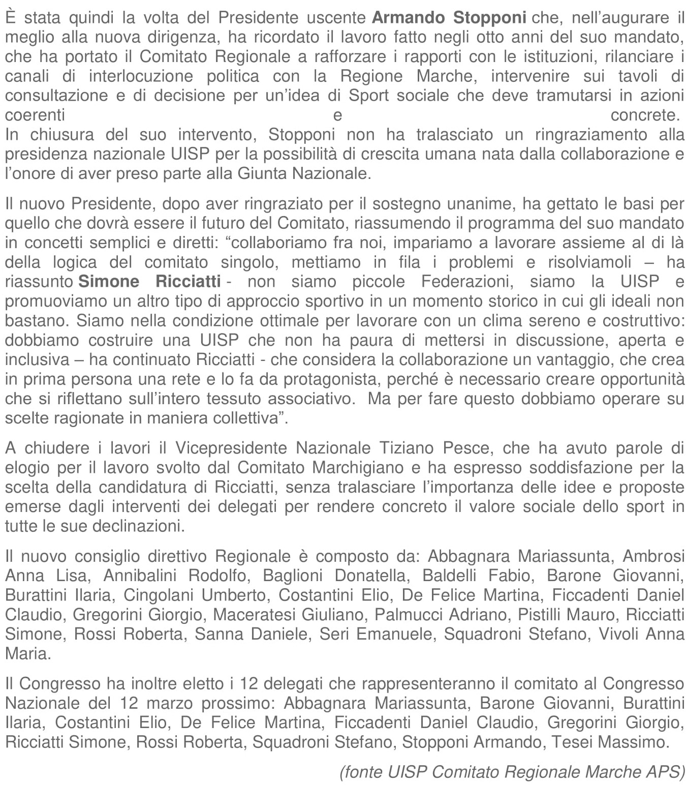 Simone Ricciatti eletto nuovo presidente UISP Marche